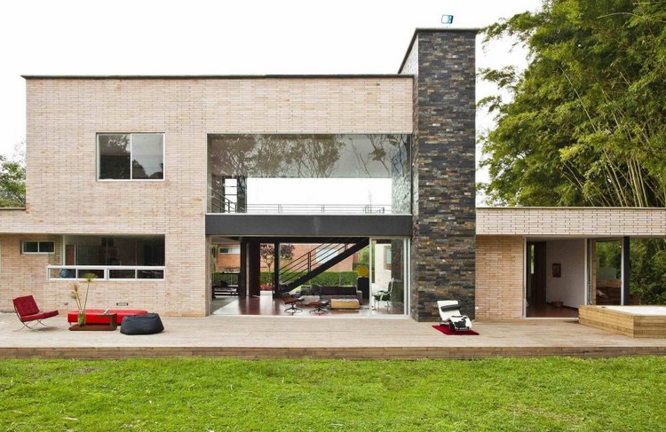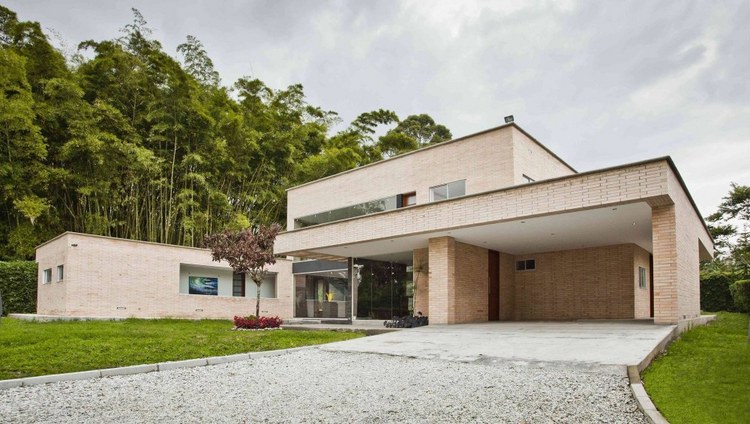 別墅設計,Olaya別墅(Olaya House)Olaya別墅位于哥倫比亞Medellin市中心大概45分鐘的車程,房屋的首層采用統一樣式的磚塊鋪筑而成,但各功能分區布局規整、明確,包括服務區、活動區和私人區。服務區域包括車庫、傭人房、洗衣房和貯藏室。活動區內設有一個巨大的廚房并與用餐區和主客廳相對,通過一道甲板式通道便可來到院落。私人區有三個我是,每一個房間都帶有獨立衛生間、浴室和更衣室。活動區與私人區被一道巨大的黑色磚墻所隔開,不論從室內還是室外都可以看到這道墻,同時墻體也是房屋主結構之一,墻體內部設有一個公共于是和兩個獨立的煙囪,分別服務于主臥和主客廳的通風。經過位于一層服務區的風格化樓梯便可以來到二層:這里簡單舒適,分為兩個寬敞的區域,一個是書房一個是主臥,另外還設有兩個巨大的露臺陽臺,可以從這里欣賞外面的風景。值得一提的是,露臺與房屋由一座小橋連接。