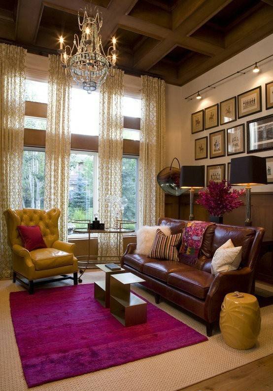 歐美風格裝修設計:酒紅色的沙發配上原木地板,溫馨的感覺別有一番滋味。