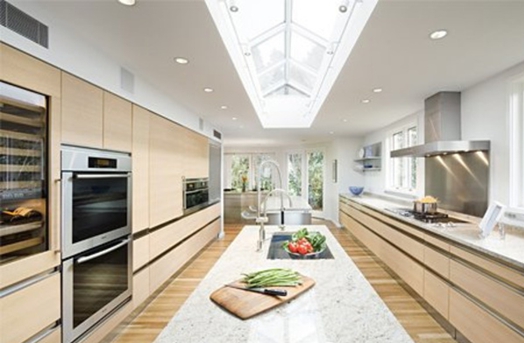 設計師必須針對需求選擇燃氣灶的功能,建議選擇多個“灶眼”的燃氣灶,提高使用效率。而油煙機的煙道走得較長,因此煙機的排風量、電機的功率都應較大。如果煙道長度大于4米,就應考慮增加一級排風裝置,增進排風效果。另外地排式的煙機也是一種不錯的選擇,當房主有在大廚房里享受野外燒烤的習慣時,設計師不妨為房主選擇這種煙機。