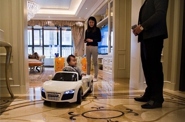 他們不約而同地選擇了上海——這個野心勃勃的、遠離中國政治中心的國際化都市作為自己安居和投資之地。這些年輕人,或自己創業,或從父輩手中繼承家族企業。他們工作努力,消費亦很驚人。圖為房地產企業老總戴軍(音譯)在自家豪宅內。